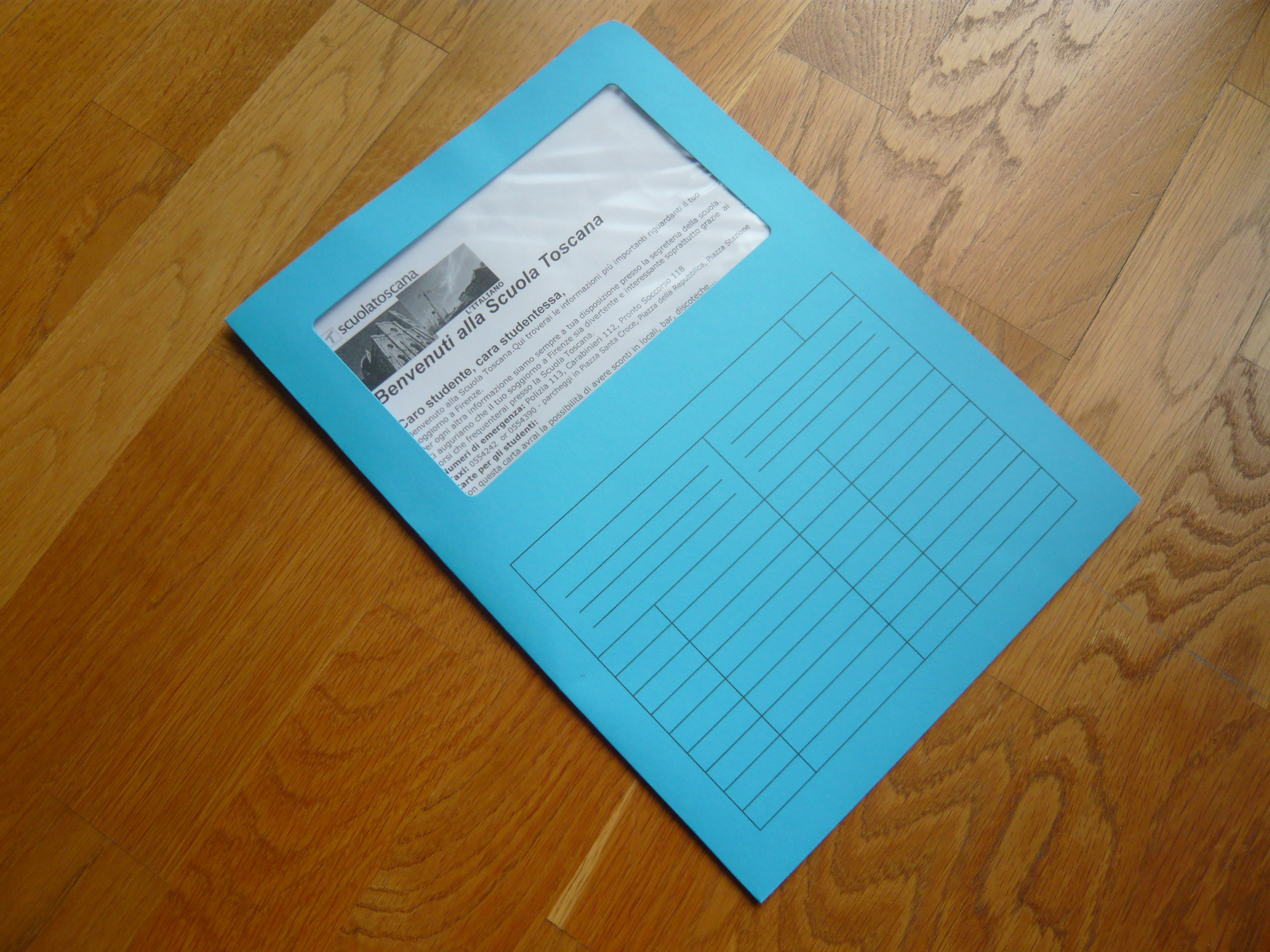 When the students come in groups, they usually come for just one week, so we do not have time to present the city, the school, and the (infinite) the possibillities of fun and interest in Florence; therefore we prepare an information kit and hand it out on arrival.