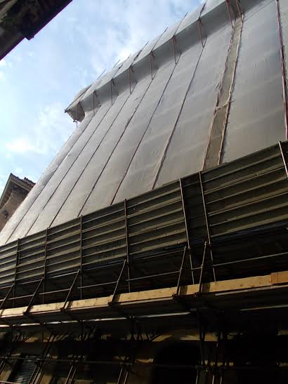 After 35 years since the last renovation, this summer the whole building has been packed in scaffoldings, scraped,sanded, replastered and repainted in its original colours.