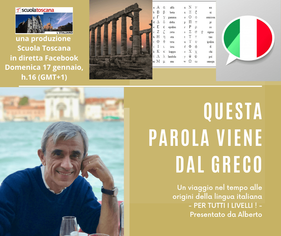Nel mio seminario faremo un piccolo viaggio nel tempo ricercando alcune di queste parole prese in prestito dalla lingua greca antica, impareremo delle nuove parole e modi per costruirne. Il seminario è per tutti, anche per chi solo da poco tempo studia italiano. Ampliare il lessico serve a tutti ! Ci vediamo su Facebook, domenica 17 gennaio alle 16.