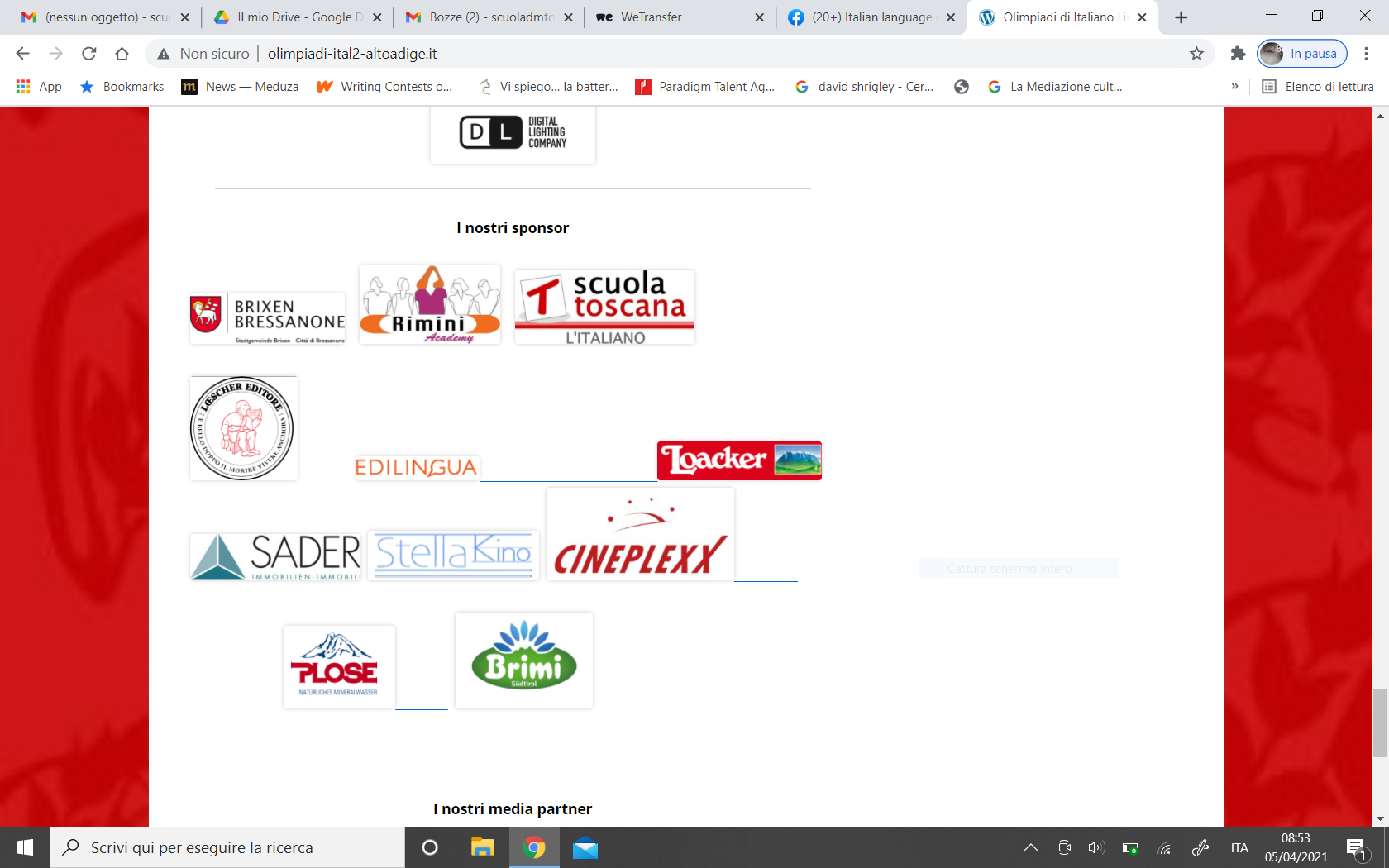 Anche quest’anno, nonostante tutto, Scuola Toscana è stata sponsor tecnico della competizione organizzata dall’Istituto “Julius und Gilbert Durst” di Bressanone con il sostegno dell’Intendenza scolastica per le scuole in lingua tedesca e dedicata agli alunni degli istituti secondari di secondo grado statali e paritari e delle scuole professionali in lingua tedesca e delle località ladine della provincia di Bolzano. Il sottoscritto ha avuto la fortuna di poter partecipare (online) alla spettacolare premiazione dei vincitori nelle varie categorie.